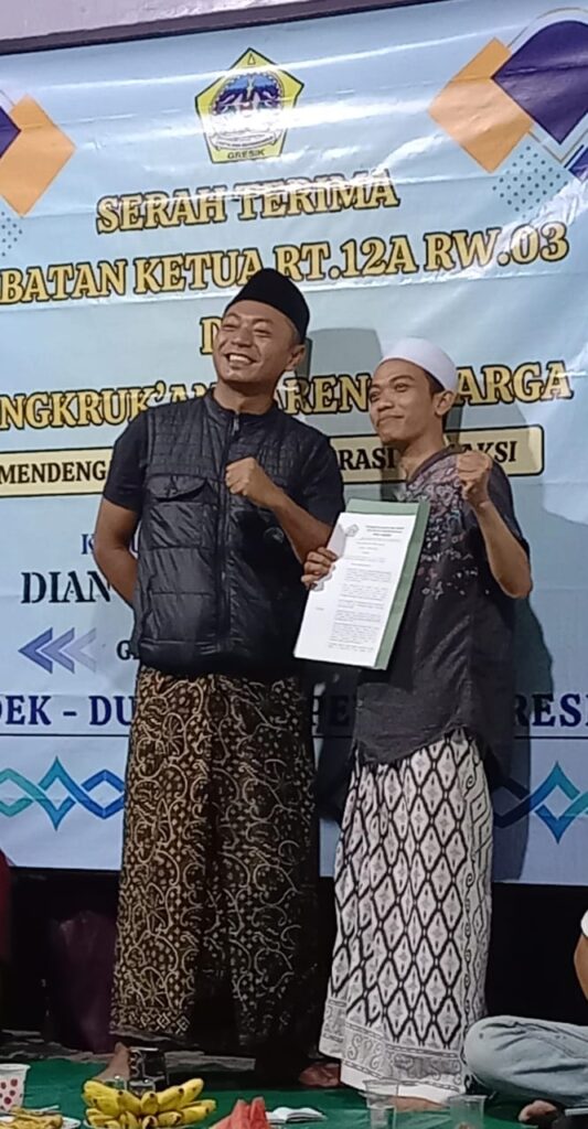 Kepala Desa Gredek juga memberi pesan kepada Ketua RT.12A terpilih Dian Syahrul Gunawan “Masyarakat itu majmuk, artinya sebagai seorang pemimpin / pemegang komando harus mampu merangkul dan memberikan pemahaman dg mempertimbangkan kapasitas masing² warga.”